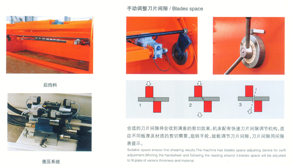 性能特點: 1、液壓傳動、擺式刀架。機架整體焊接堅固耐用,使用氮氣缸回程,平穩(wěn)迅速。 2、具有無級調(diào)節(jié)行程的功能,上下刀片口間隙量用手柄調(diào)節(jié),刀片間隙均勻快速易調(diào)。 3、防護柵與電器連鎖確保操作安全。 4、后檔料尺寸及剪切次數(shù)有數(shù)字顯示裝置。 5、NS數(shù)控系統(tǒng)與位置編碼器組成閉環(huán)控制系統(tǒng),速度快、精度高、穩(wěn)定性好,能精確地保證后擋料位移尺寸的精度,同時數(shù)控系統(tǒng)具有精度補償功能及自動檢測的多種附加功能。